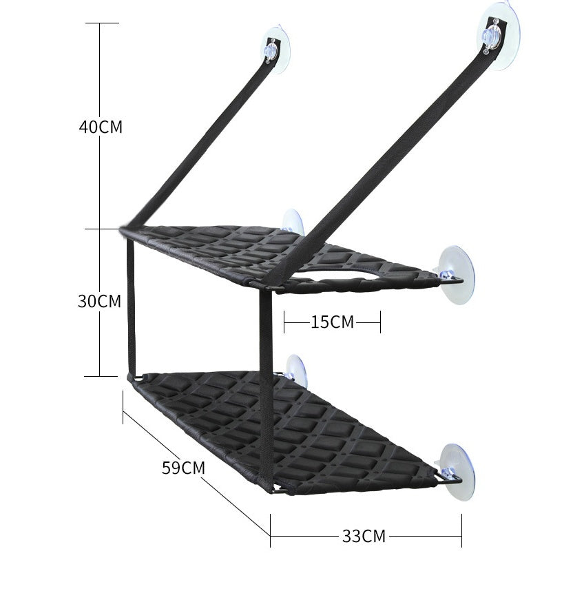 DURABLE - cat hammock is equipped with an extra-strong and large designed 3.5 in. suction cup. Easy to mount and can hold up to 60 lbs. of weight.